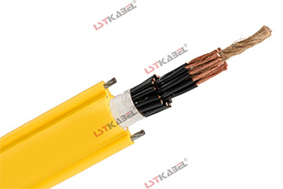 特殊性能:絕緣和護套等用扁電纜專用丁腈復合料;提高電纜柔軟特性以及防腐耐寒等性能;可按客戶使用要求,在線芯兩側增加鋼絲繩用來加強電纜的抗?jié)q強度。